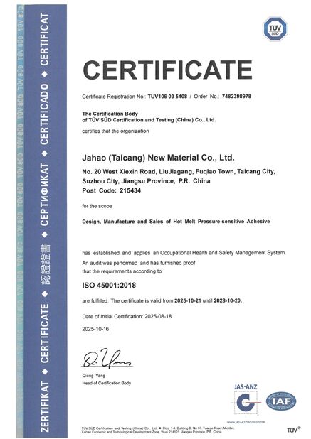 Padrão:ISO 45001: 2015 Número:TUV100 03 5408 Data de emissão:2025-10-21 Data de expiração:2028-10-20