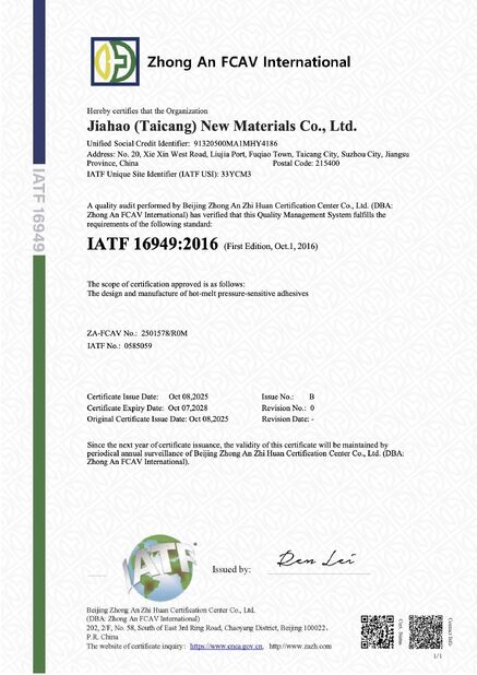Padrão:IATF 16949:2016 Número:0585059 Data de emissão:2025-10-08 Data de expiração:2028-10-07